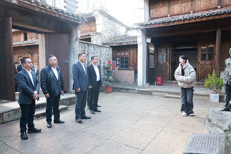 隨后,一行人前往臺州葭沚老街,參觀了臺州第一個黨組織紀念館和臺州家風家訓館。這些場館不僅承載著臺州深厚的歷史文化底蘊,更蘊含著紅色革命精神與優良家風傳統。通過實地參觀,雙方代表對臺州的歷史脈絡與紅色文化有了更為深刻的認識,進一步增強了黨建工作的使命感與責任感。