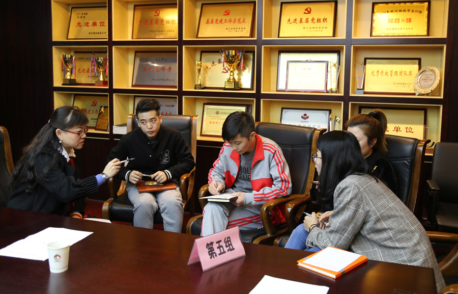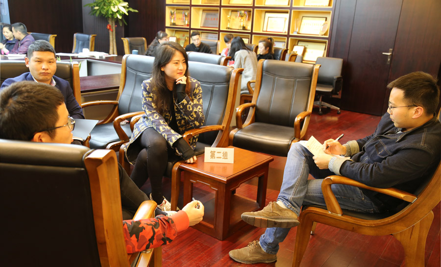 課后,大家分組討論公司發(fā)展中存在的問題,并由組長代表小組上臺發(fā)言。董事長、總經(jīng)理鄭浩,總經(jīng)理助理陳建先后對各組提出的8個問題一一進行回應。